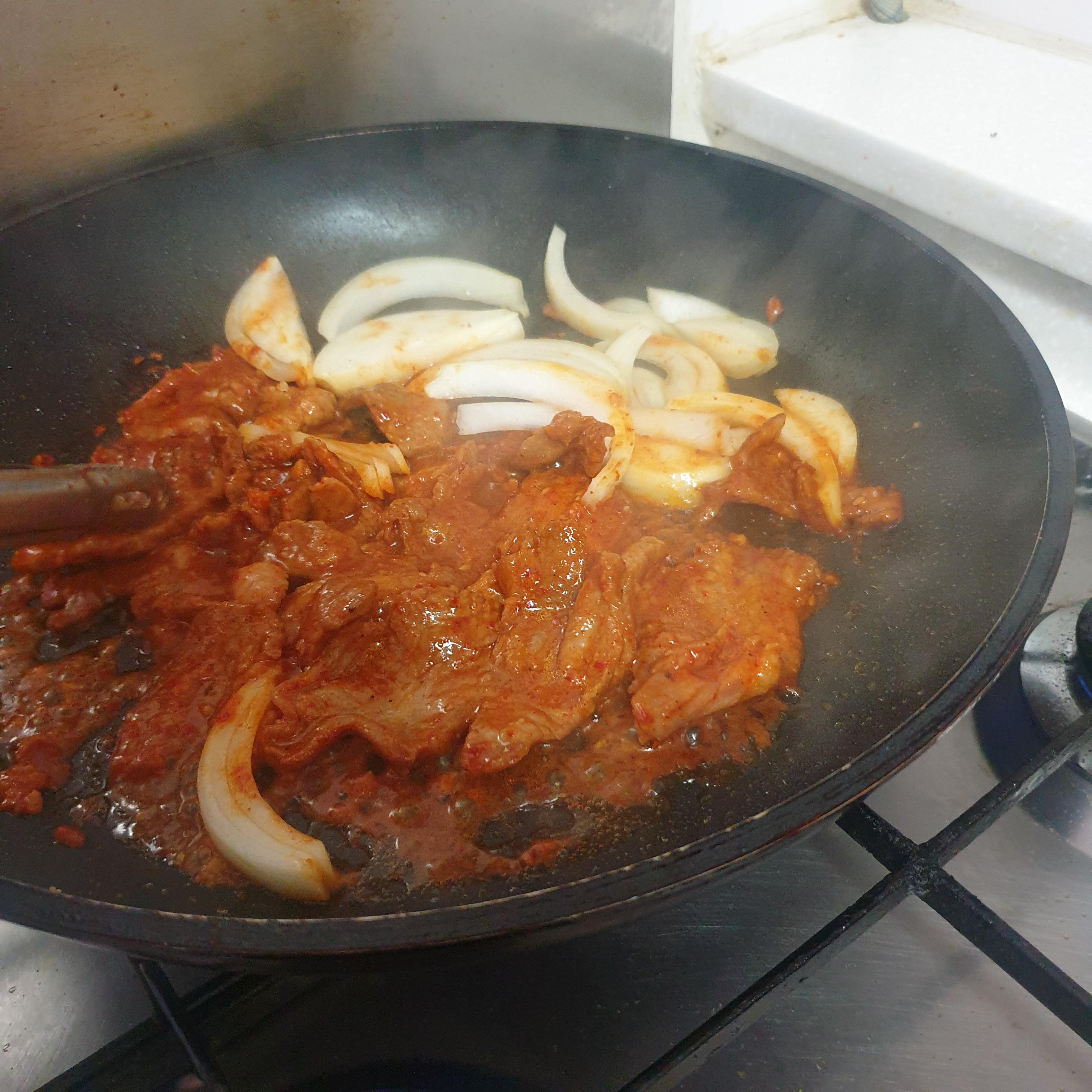 여기까지 하면 뭔가 외국 아침밥 같았을텐데 뭔가 아쉬워서 어제 미리 양념해 둔 제육볶음을 꺼냈다. 스페인식 아침식사를 하고 싶었지만 오믈렛과 아보카도 만으로는 뭔가 허전한 느낌이었다.