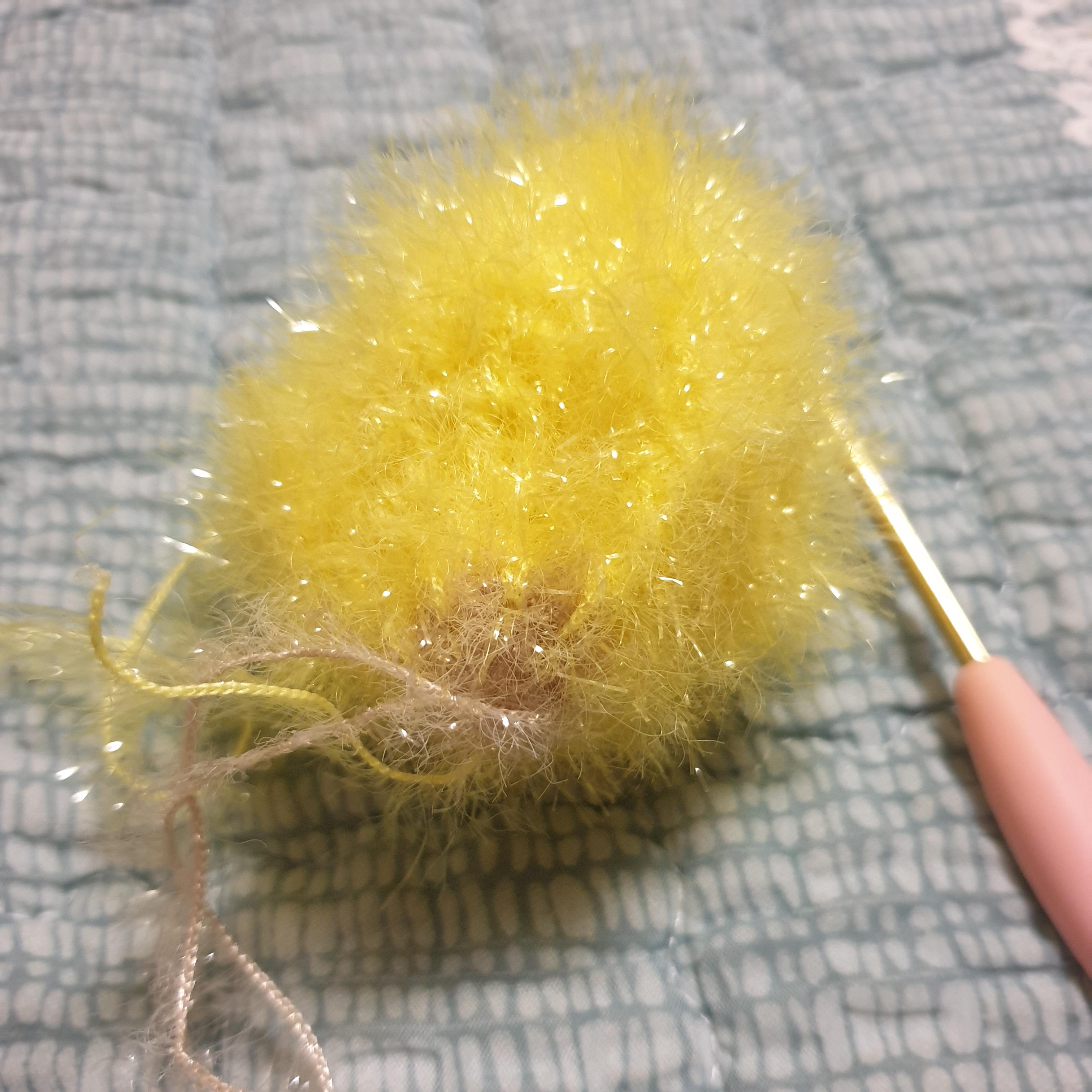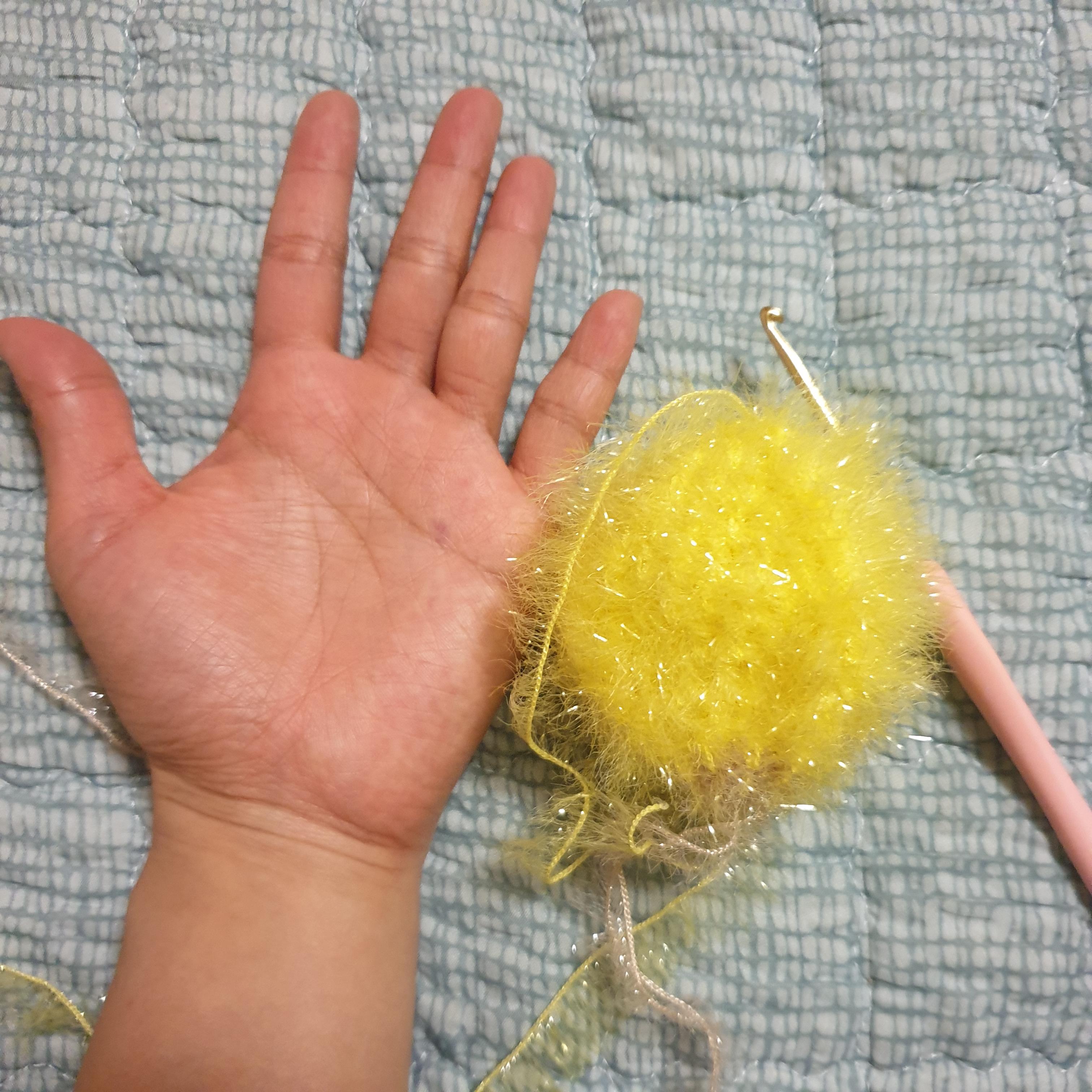 그런데 생각보다 너무 크다. 아직 긴 바나나 모양은 나오지도 않았는데 내 손바닥만큼 커졌다. 계속 하다보면 점점 더 커지지 않을까?? 지금은 꼭 레몬같다. 레몬으로 바꿀까. 아니면 주방 수세미 말고 청소용 수세미로 써도 될 거 같다.