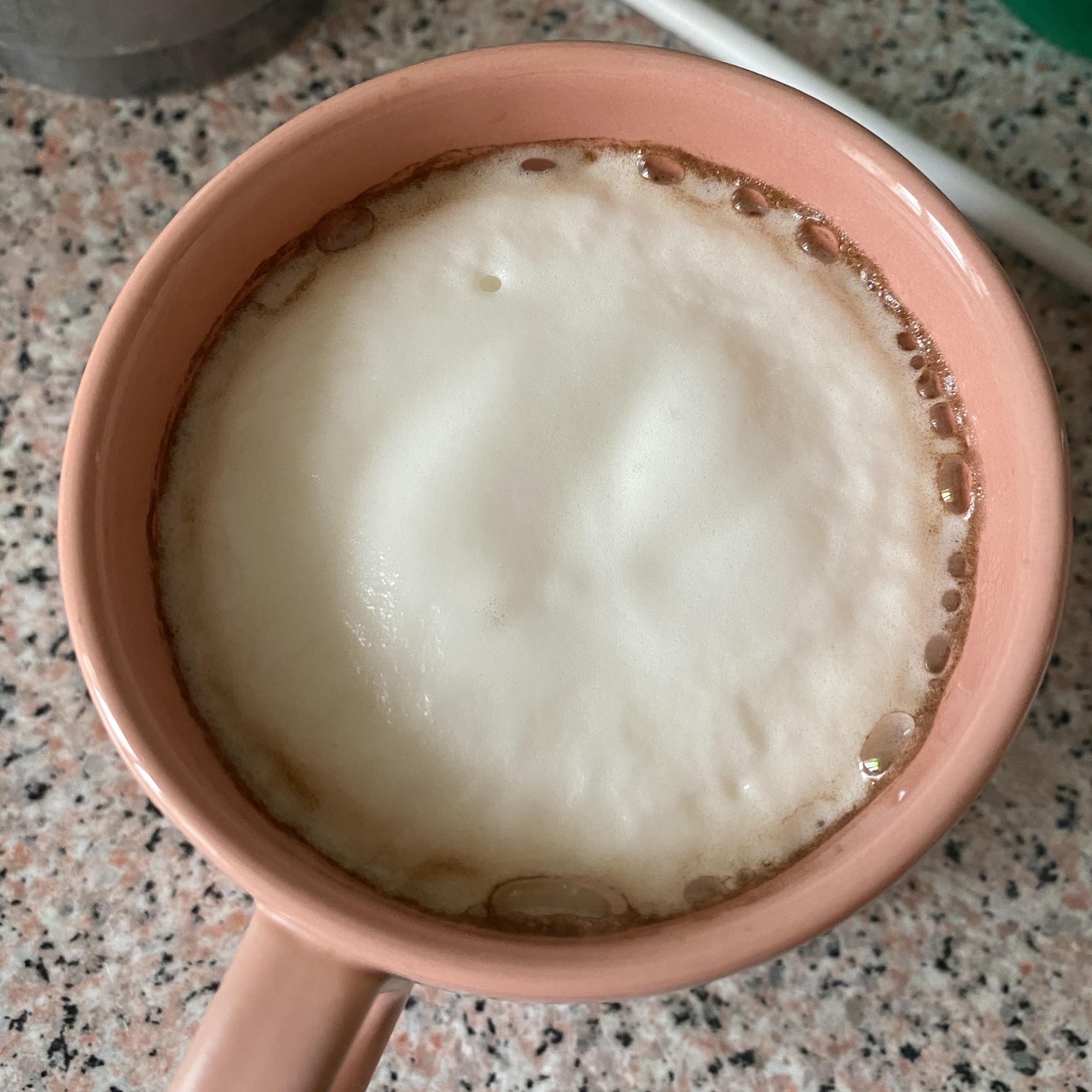 급하게 하느라고, 커피 내리고 위에 살짝 얹어줬다. 오 나쁘지 않은데! 우유가 더 맛있는 느낌이었다. 나중에는 카푸치노를 만들어봐야지. 시나몬 가루 넣고!
