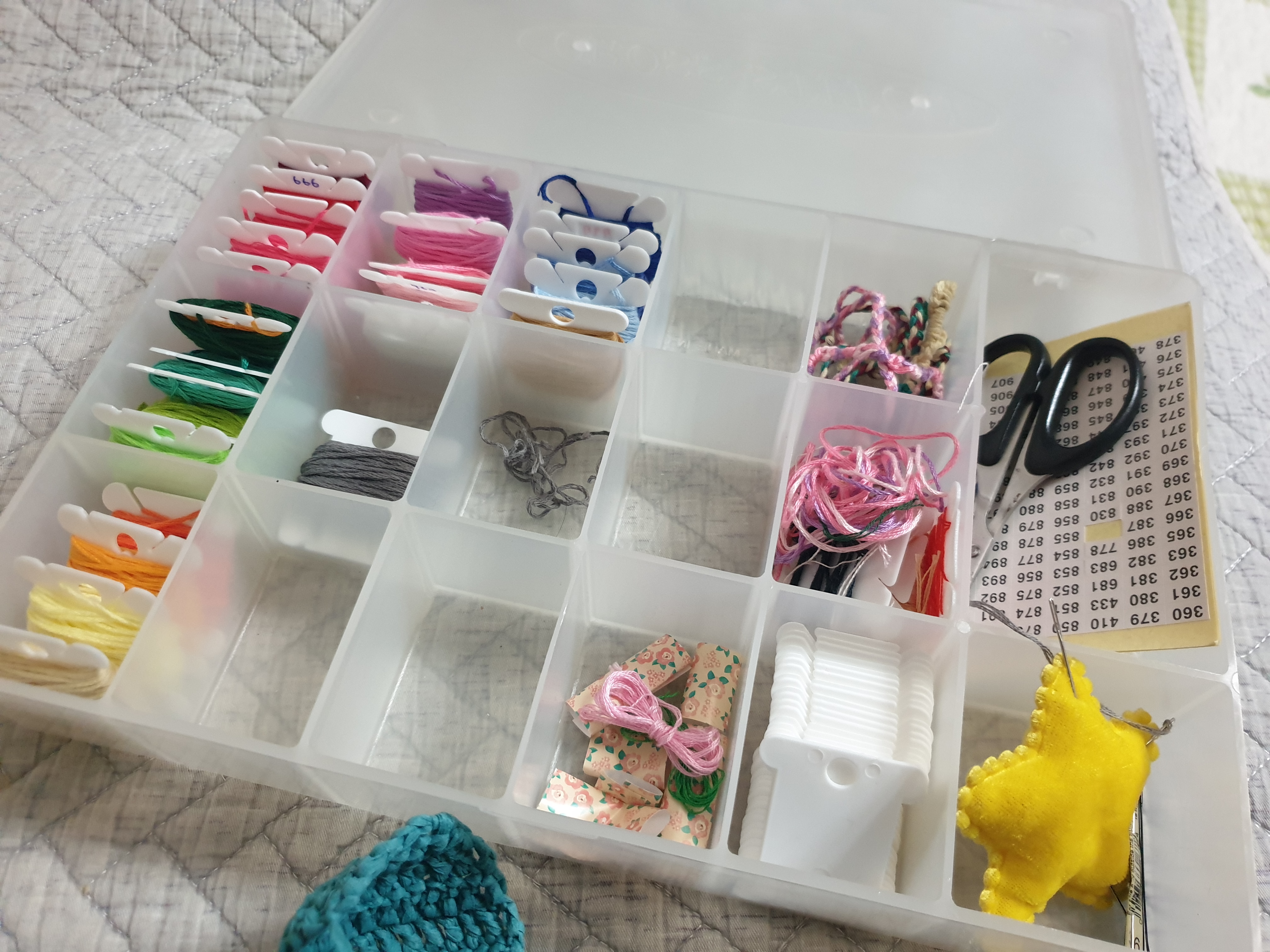 바느질을 하기 위해 초등학교 때 쓰던 십자수실 통을 꺼냈다.