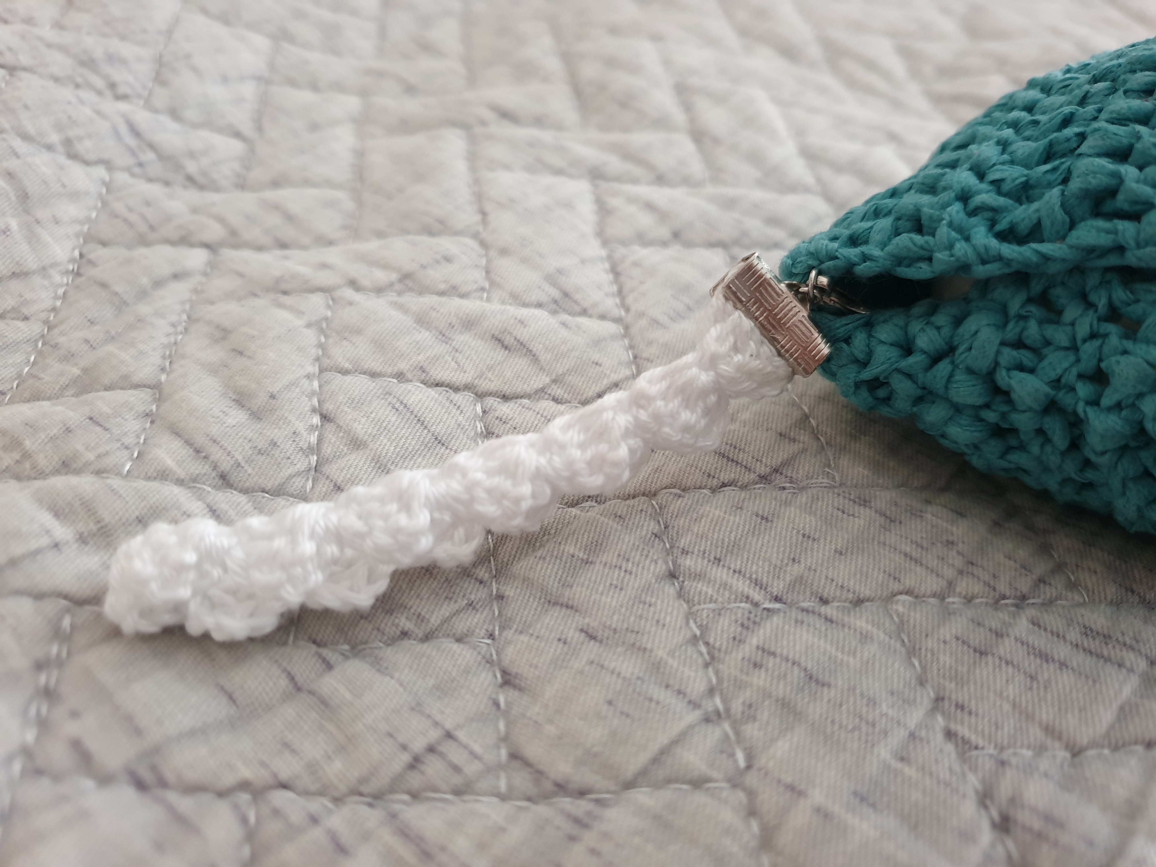 코바늘로 처음 만들어본 고리 끈이 왠지 엉성하다.