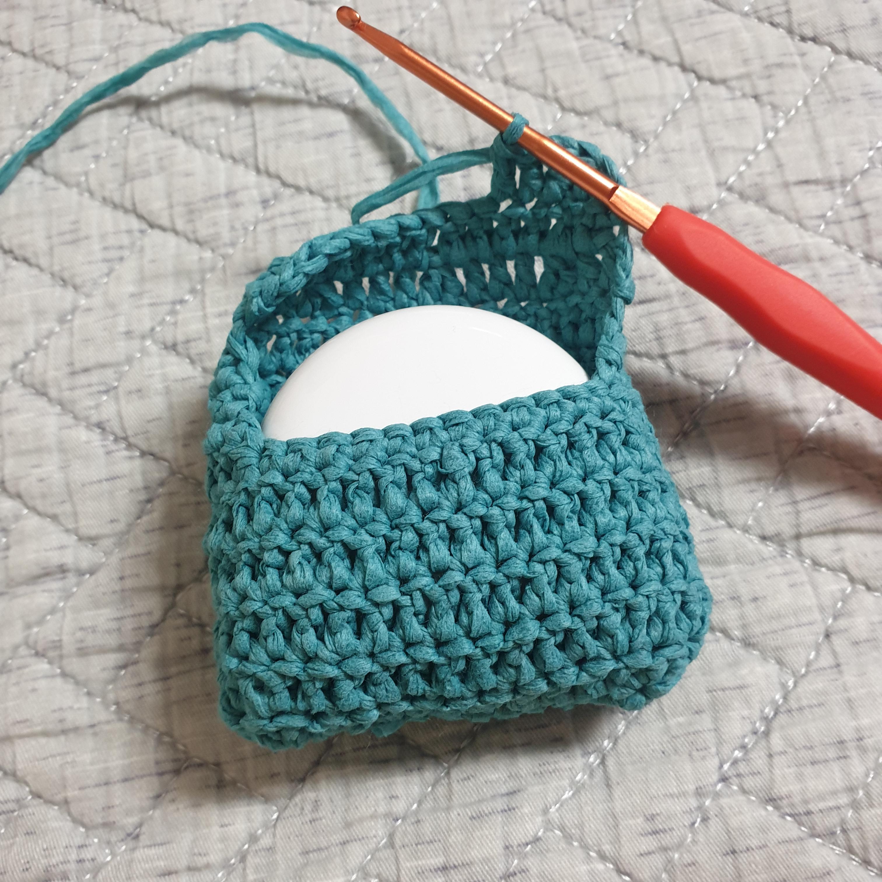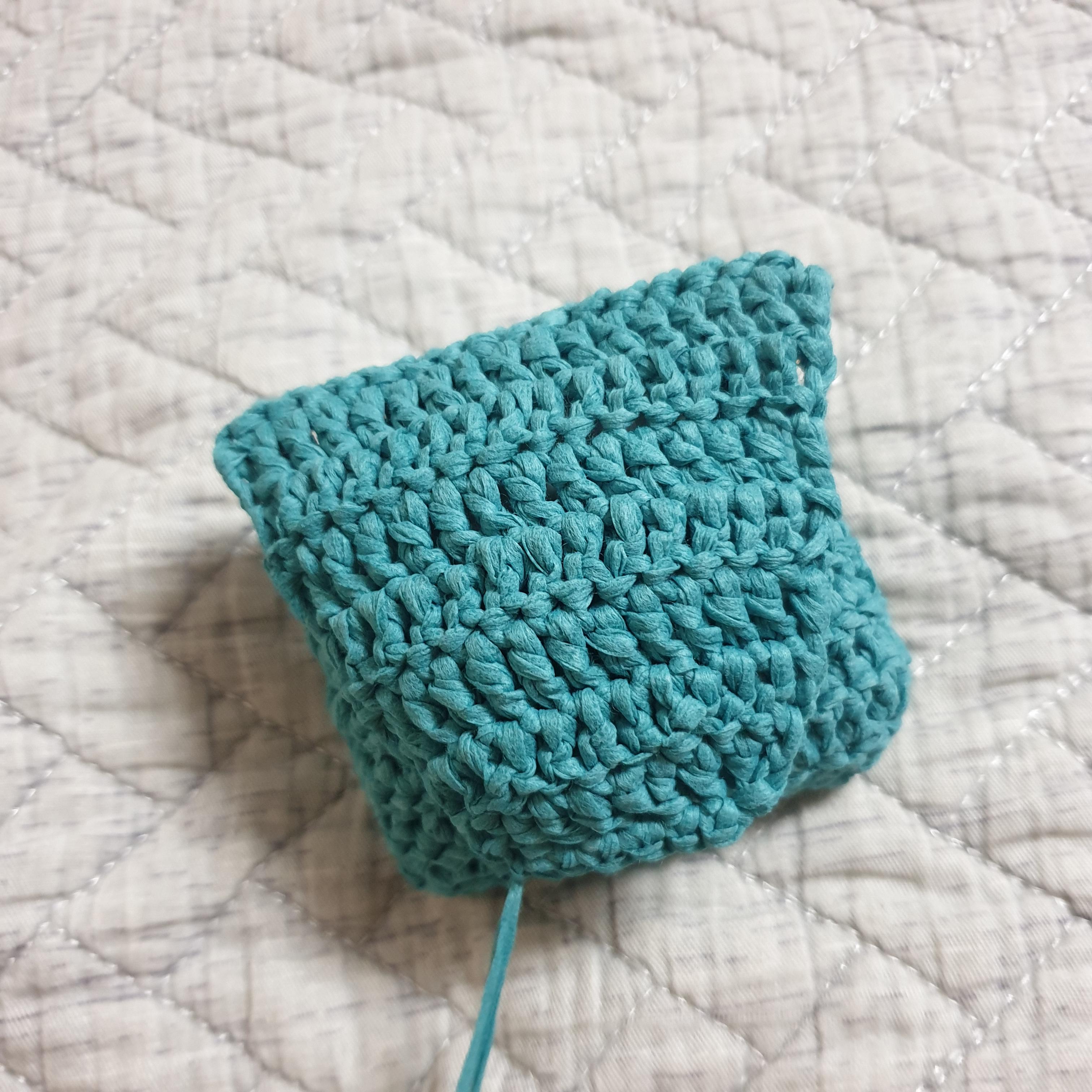 어떤 주머니를 만들지 유투브를 찾아보았는데 확 눈에 띄는 모양이 없었다. 그래서 직접 크기에 맞춰 내 맘대로 만들기로 했다. 하지만 나는 코바늘로 만들어 본 것은 수세미밖에 없으니까 수세미를 만들면서 배운 기술들을 모두 다 활용했다.