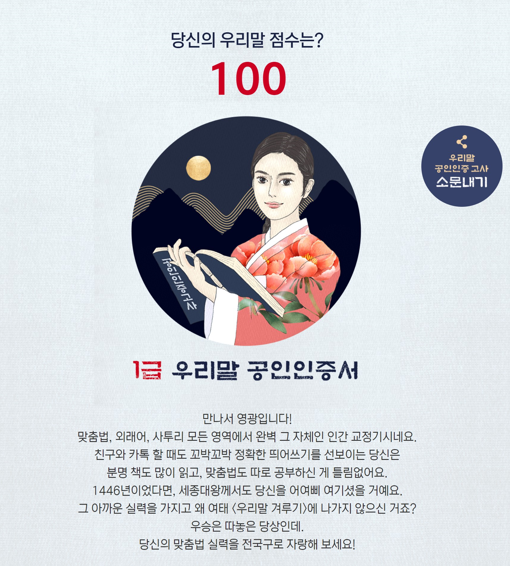 39. 한글날 맞이 우리말 공인인증고사 도전해보세요!!