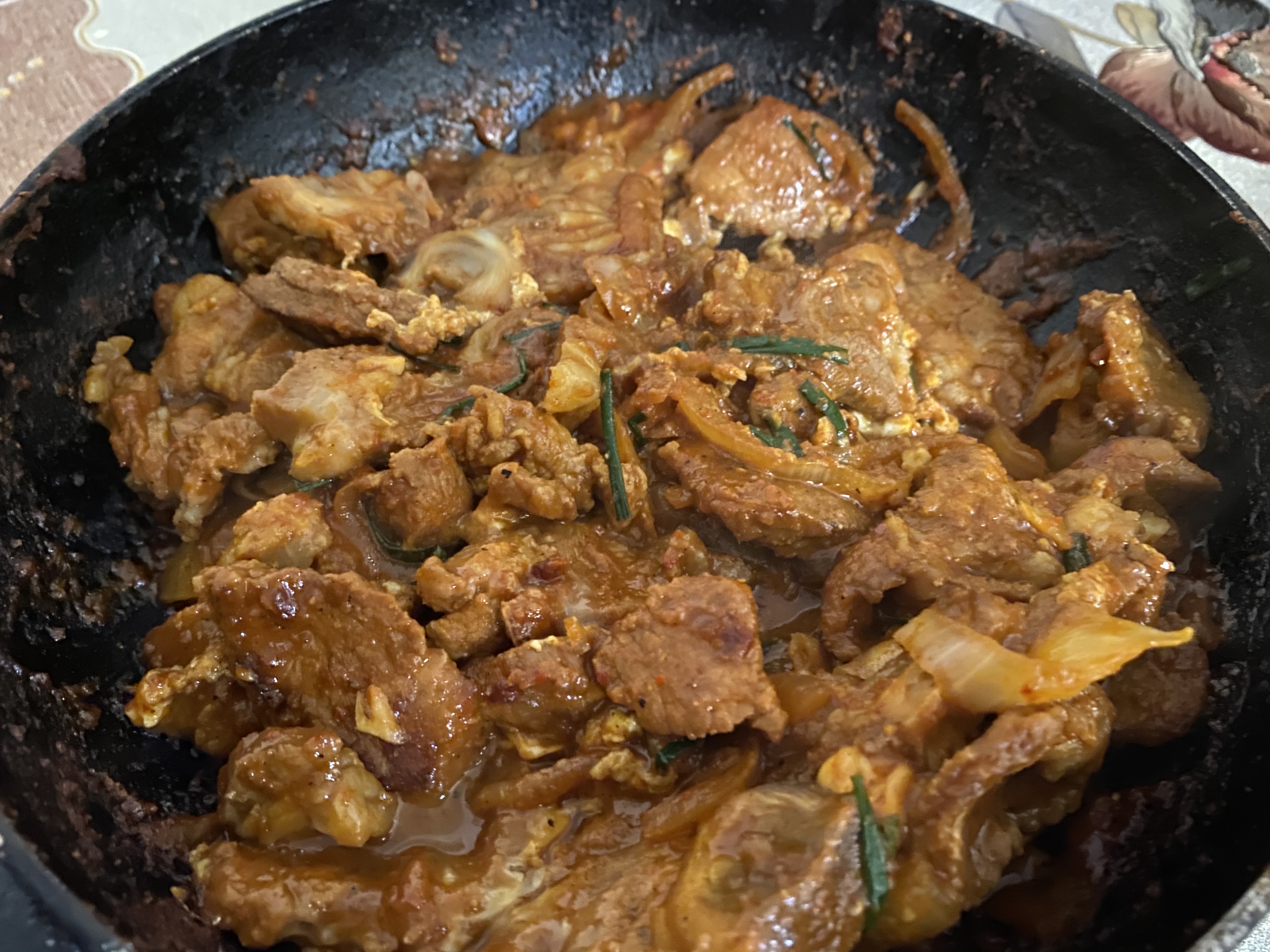 아가 양념했던 제육볶음! 전하고 남은 계란물도 위에 얹어줬당