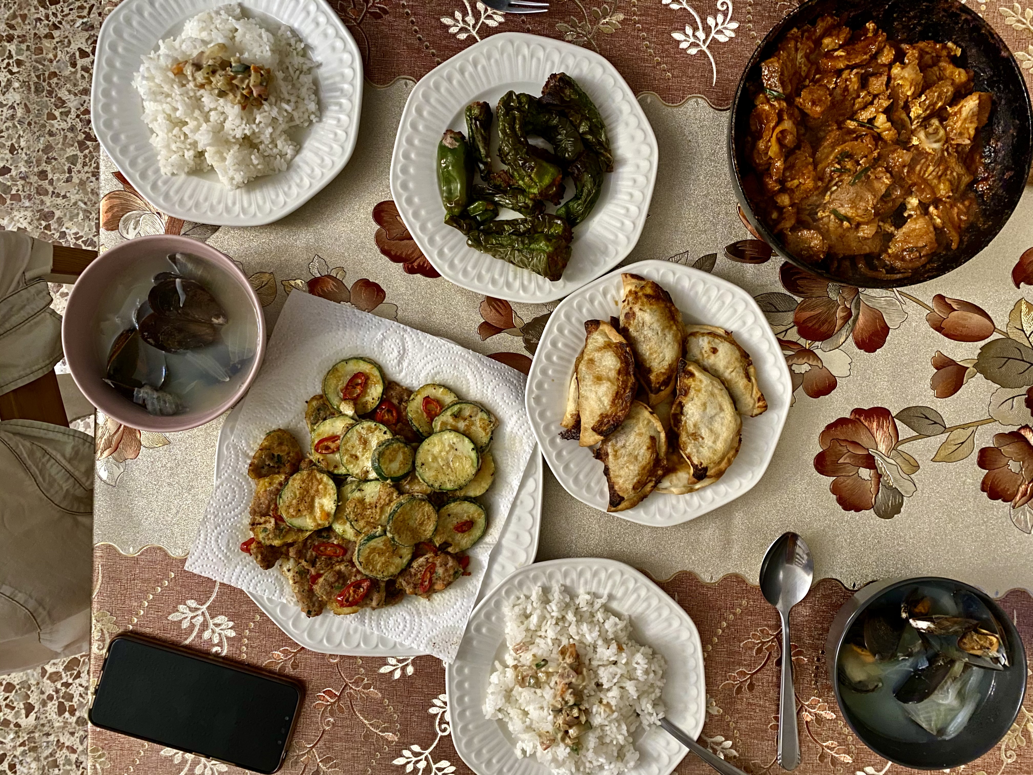 전날 만들었던 홍합탕까지 해서 완성! 별로 안 한 것 같은데, 시간이 엄청 오래 걸렸다. 2시간 정도 걸린 것 같다. 재료 준비하고 튀기고 요리하고. 아휴 진짜 어른들 보면 명절에 하루종일 음식하고 설겆이하시는 것 같은데, 왜 그런지 이해가 된다.