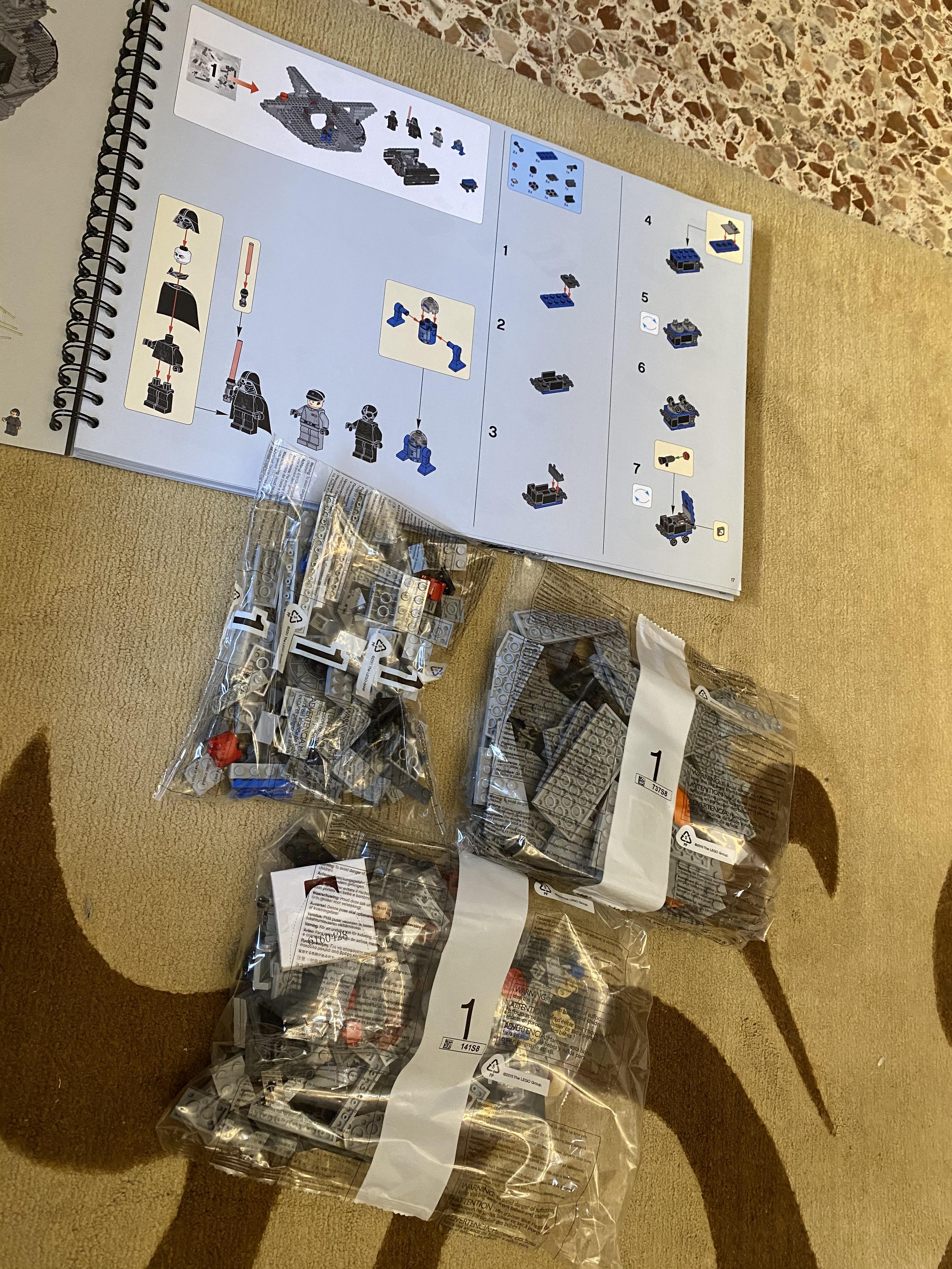 음식을 다 먹고 조금 쉬다가 레고를 했다. 사실 이 주에 남자친구가 인스타에 뜬 백화점 할인을 봤는데, 거기에 스타워즈 데쓰 스타가 포함이 되어 있었다. 계획에는 없었지만, 우리의 꿈?이라고 해야하나 ㅋㅋㅋ 올해 혹은 내년에 꼭 하자고 약속했던 레고인데, 갑자기 할인이 뜨니... 현재 최저가였다. 심지어 슬슬 생산하지 않는다는 소문까지 있어서 고민을 하다가 결국 샀다.