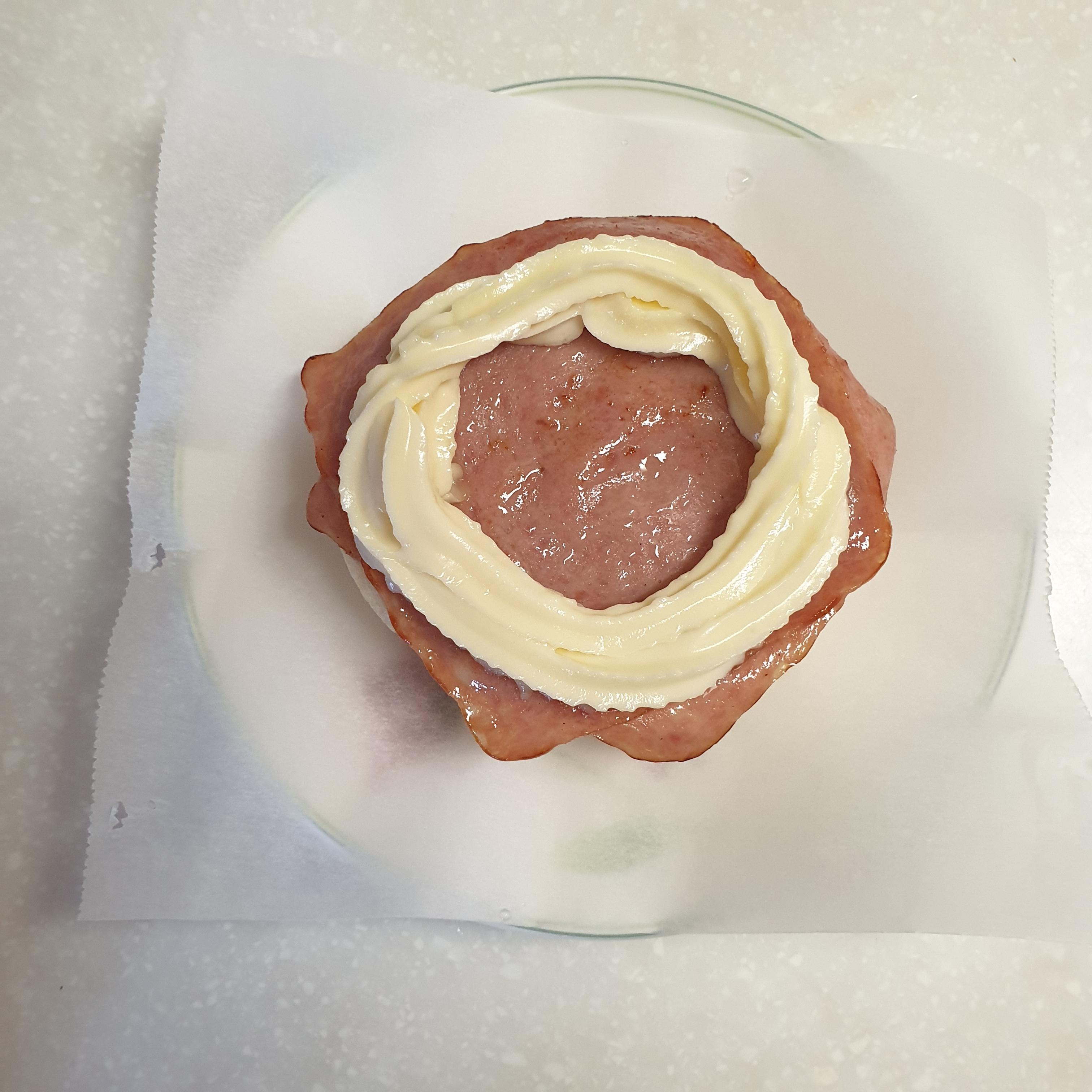 그리고 망한게 아쉬워서 다시 도전했다. 이번에는 식빵을 쪼개서 그 안에 햄을 넣었다.
