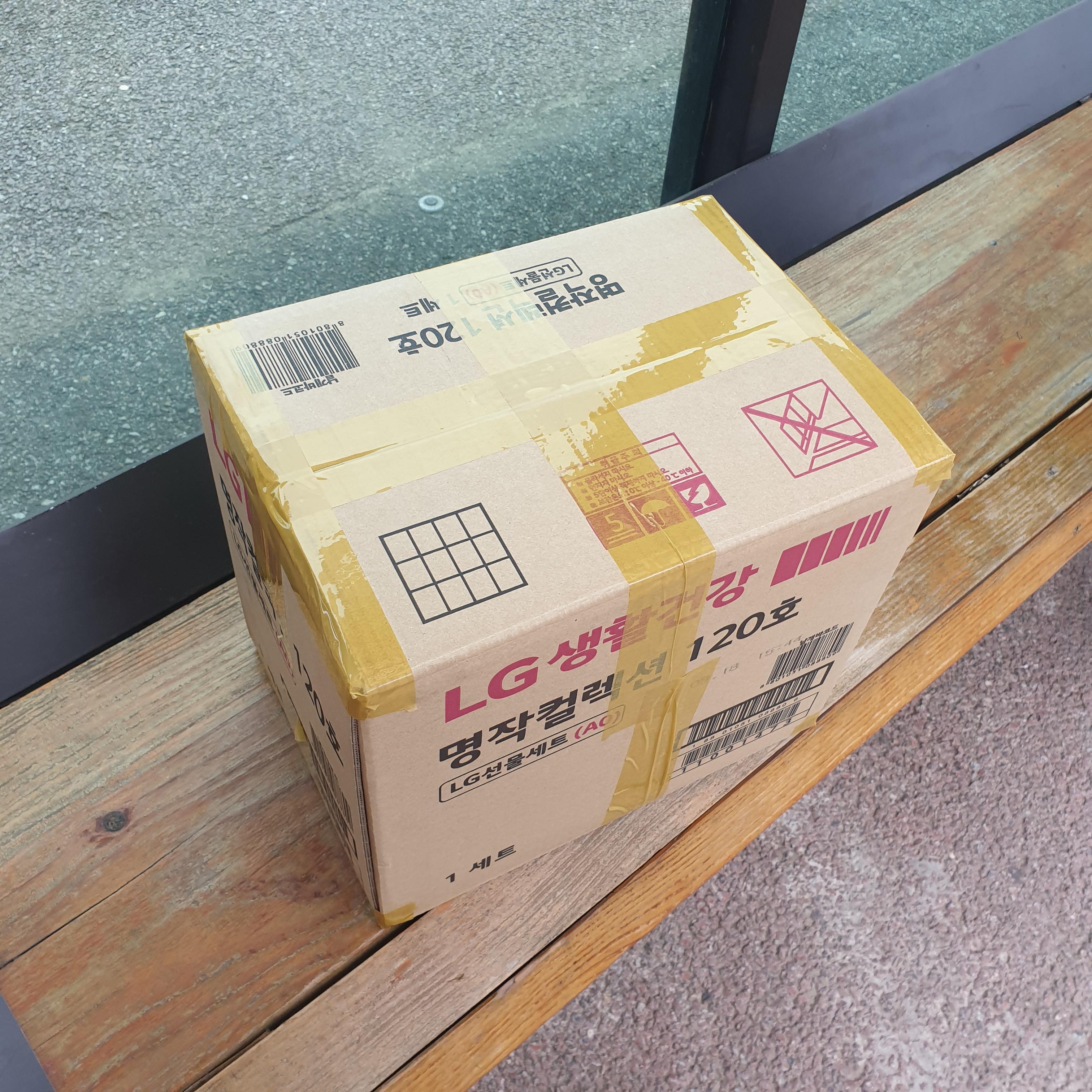 이번에도 버스정류장에서 버스를 기다리며 한 장 찍었다. 지난번 상자보다 무거운데 상자가 작아서 훨씬 들기가 편했다.