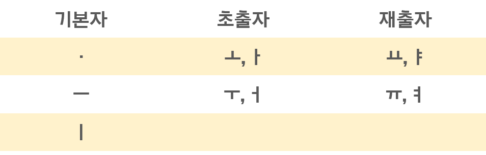 재출자는 '기본자+기본자+기본자'로 만든 것이다. 즉, 재출자는 초출자에 기본자를 한번 더 더한 것이다.