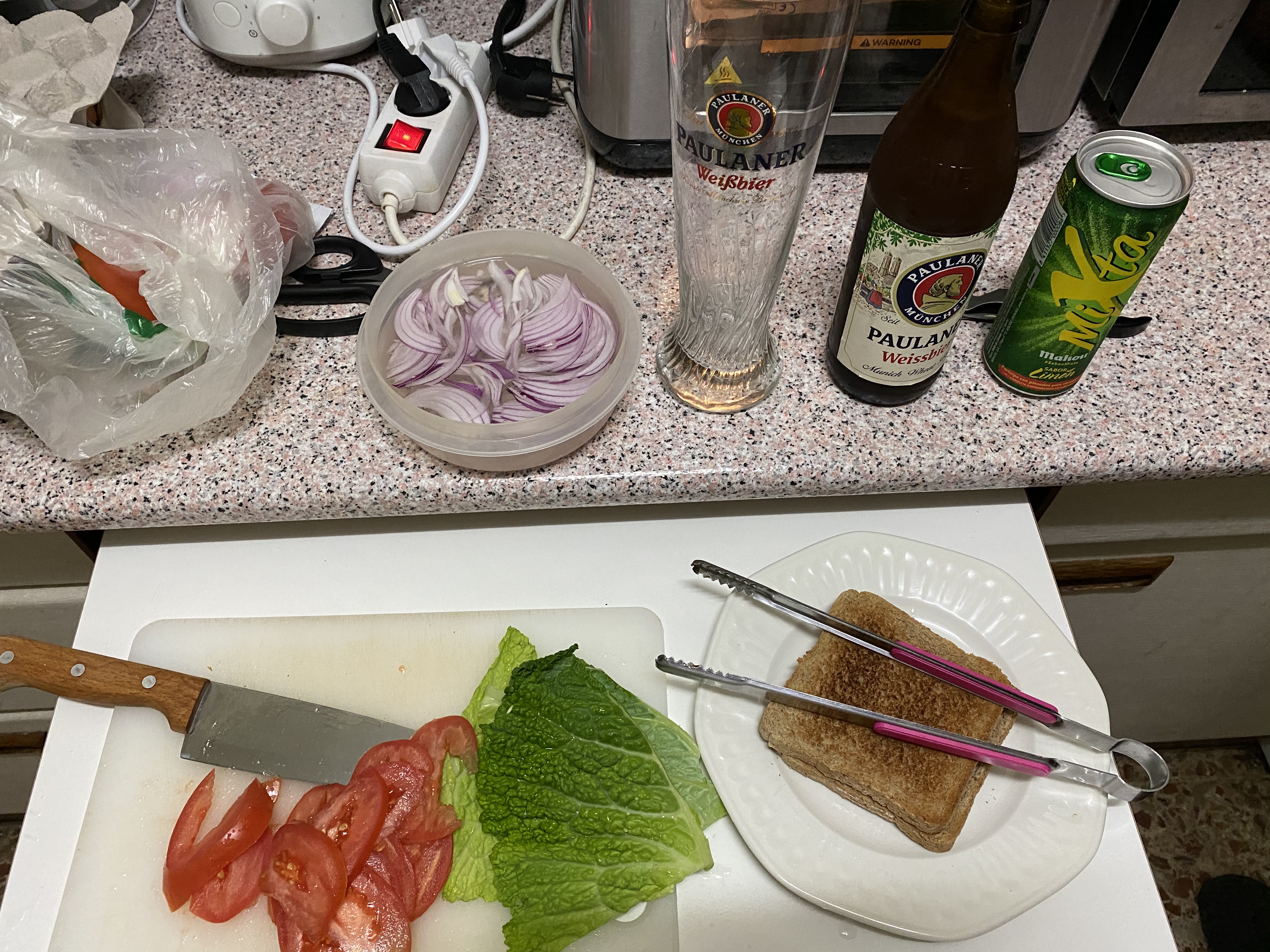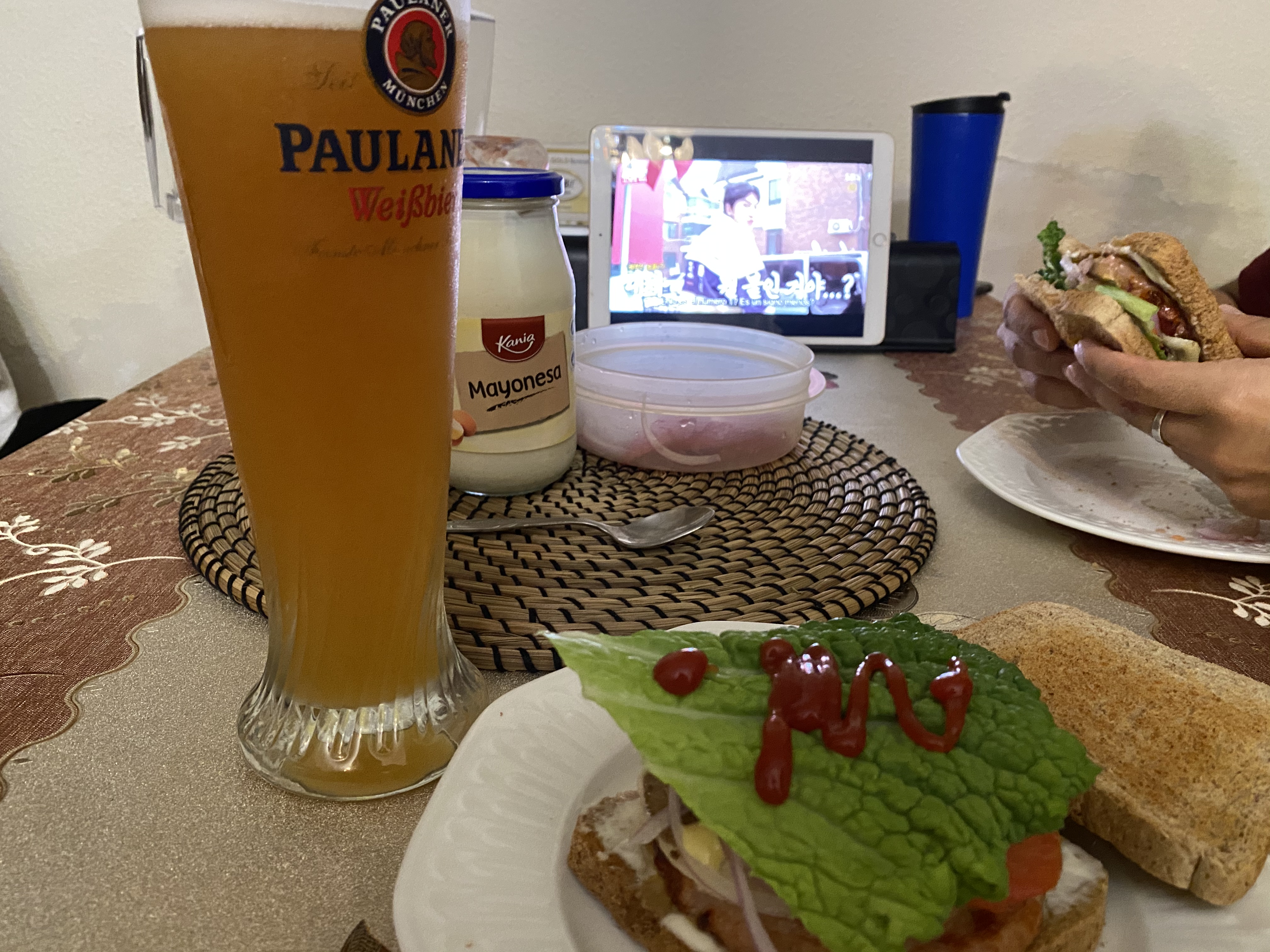 갔다와서 샤워를 하고 그렇게 점심을 많이 먹고 배불렀다고 하면서 ㅋㅋㅋㅋ저녁으로는 마트에서 사온 닭 패티로 햄버거를 해 먹기로 했다. 그리고 맥주 맥주 밀맥주도 함께. 저기 있는 mixta 캔도 사실 어제 만난 분이 주셨다 헤헷 (잘 우려 먹네요. 감사합니다)