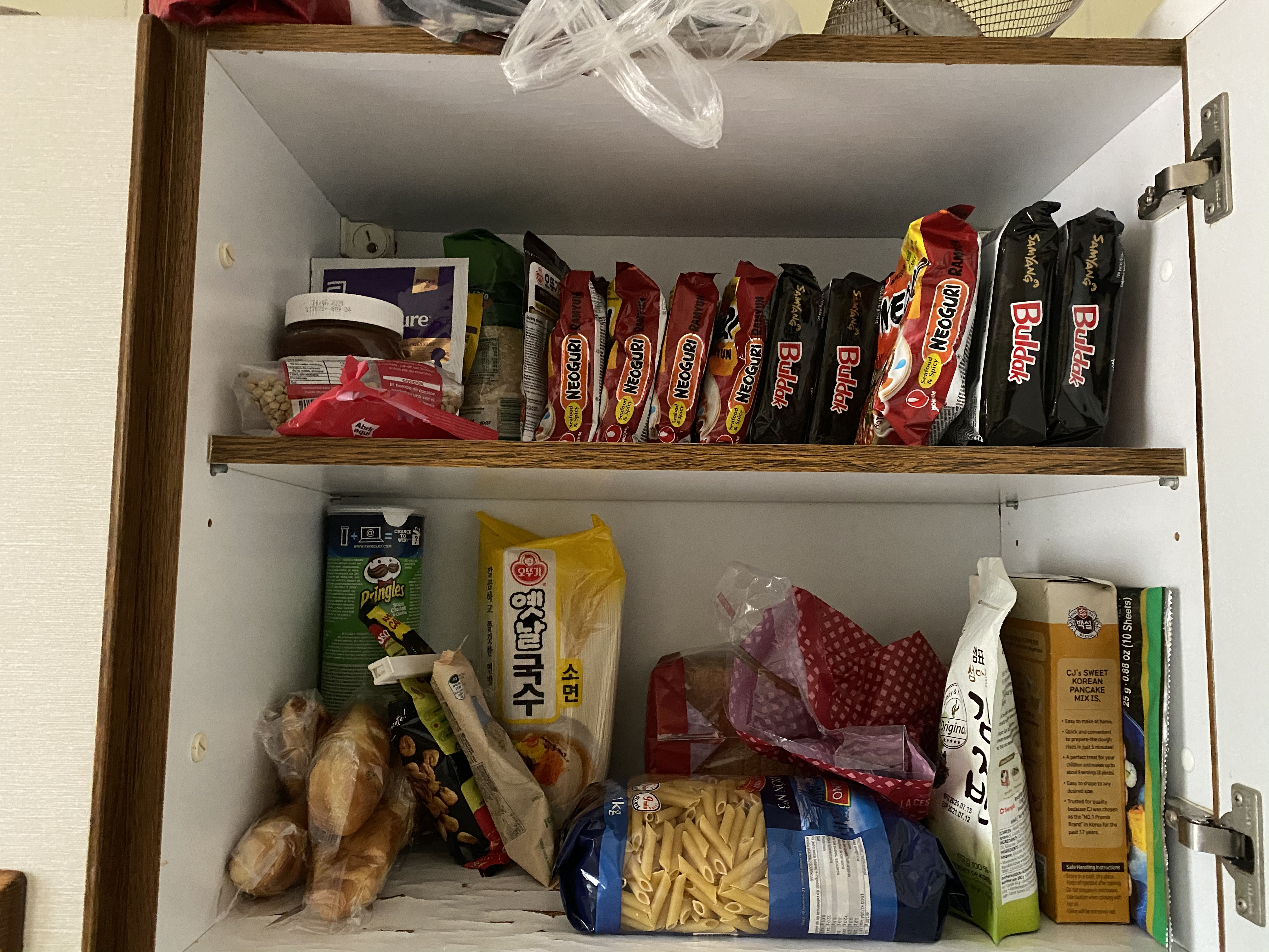 정리를 하는데 부엌의 칸이 다 찬 게 너무 뿌듯하고 기분이 좋았다. 마치 부자가 된 기분이다 ㅎㅎㅎ (참고로 당면은 아마존에서 시켜서 다음 날 올 예정이었다 ㅎㅎ)