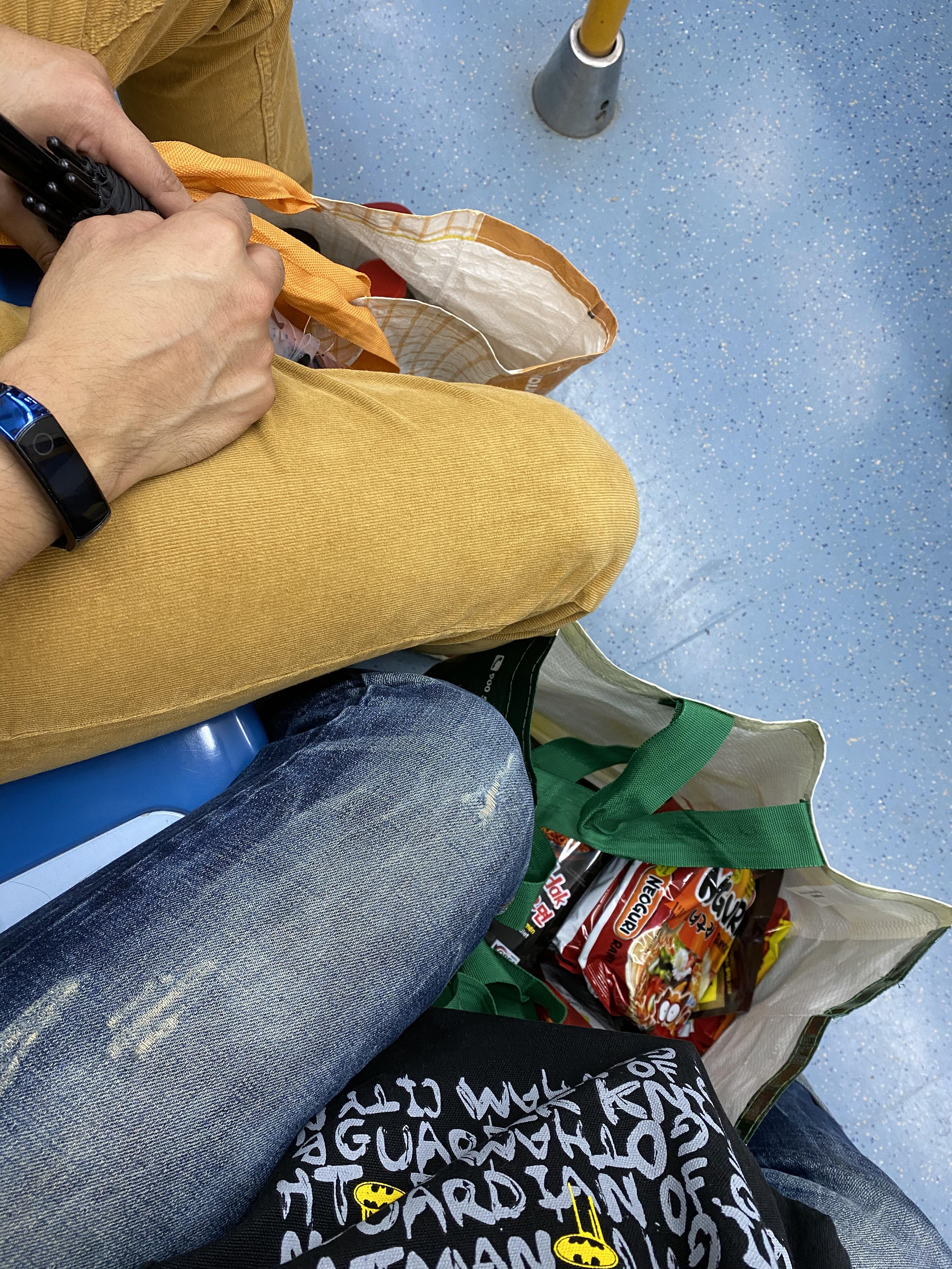 나는 도착하자마자 완전 눈 돌아갔다. 직접 주인 아주머니까 말씀을 드려야 해서 혹시 깜박할까봐 리스트를 적어왔는데도 저것도 사고싶다 저것도 사고싶다 했는데, 리스트에 있는 거 시키는 데도 정신이 없고, 더 시키고 싶었는데, 너무 많이 나올까봐 더 많이 시키지도 못했다. 그래도 나름 많이 샀다. 맘 같아서는 가게를 정말 털고 싶었지만 그럴 순 없었고, 간장, 라면 이런 거 위주로 샀다. 짐 들고 지하철 역으로 가는데 사람 진짜 많아... 완전 정신이 없었다. 정리도 못하고 막 후다닥 갔다.