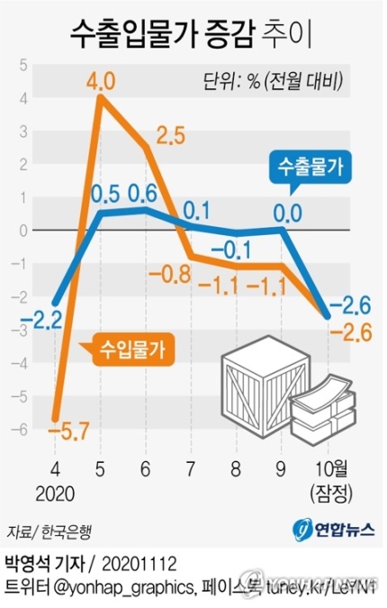 [출처] 2020. 11. 12.자 연합뉴스 - 10월 수출물가 2.6%↓…약 2년 만에 최대 하락