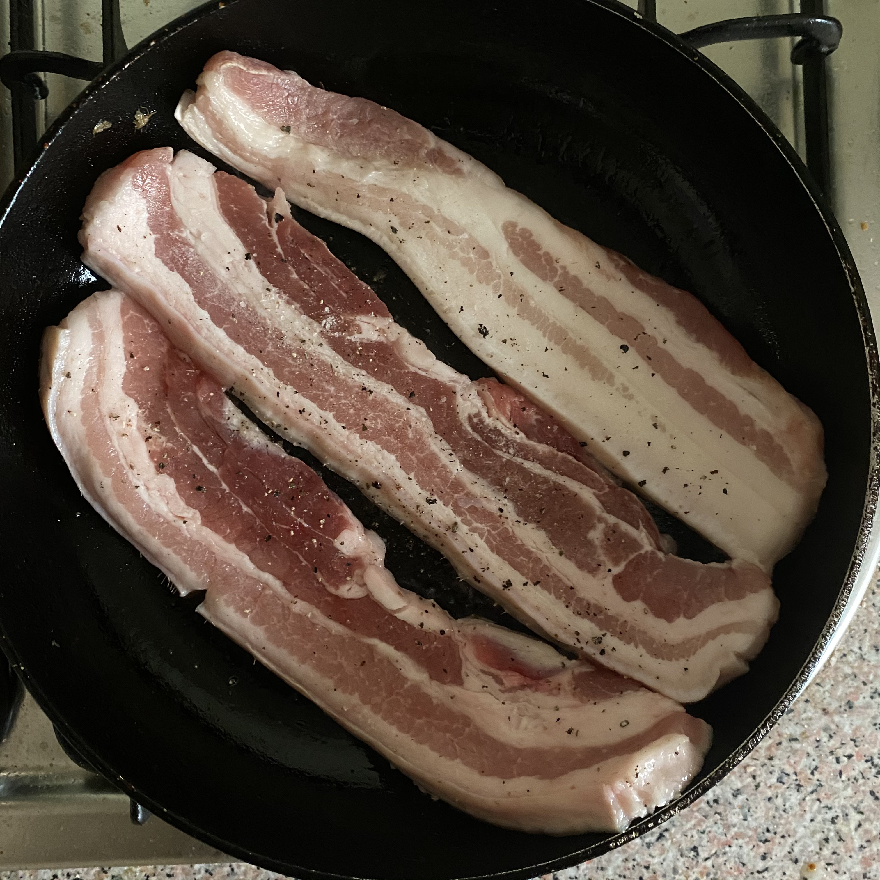 반죽이 냉장고에 있는 동안에 나는 삼겹살 김밥 재료를 준비했다. 먼저 삼겹살 김밥이니 삼겹살! 3 줄을 할 거라서 3줄을 구웠다.