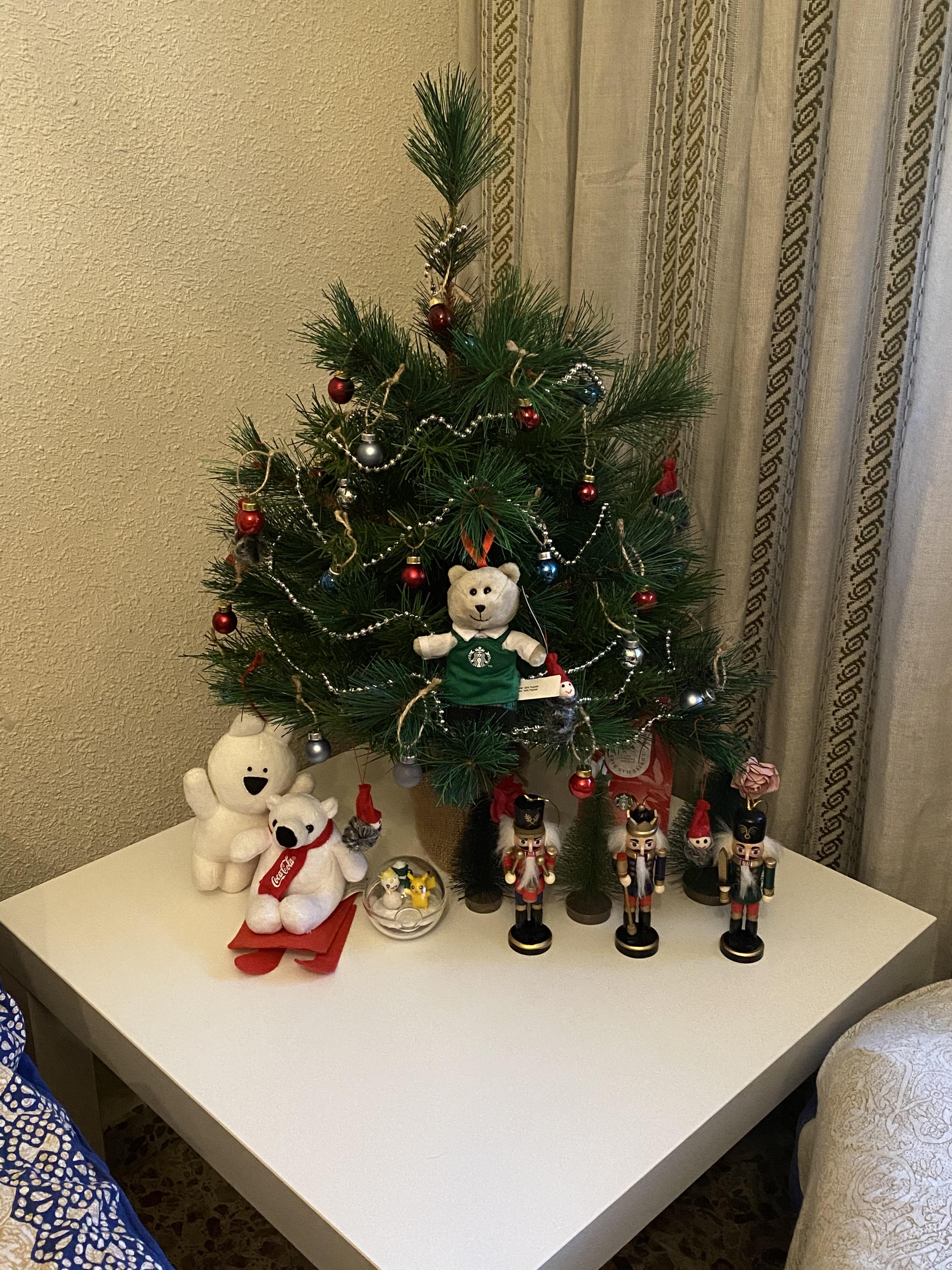 점심을 먹은 다음에는 나는 일을 조금 했고, 그 동안 남자친구는 이케아에서 가져온 탁자를 조립했다. 사진은 없지만, 이거 엄청 쉽다. 다리만 연결하면 되는데, 나사? 넣고 돌리면 된다. 대신 잘 맞춰서 돌려야 한다. LACK 탁자인데, 7유로다. 저번에 잠깐 쇼파를 옮기면서 구석에 빈자리가 생겼는데, 트리가 정말 작다보니까 그 자리에 탁자를 놓고 트리를 올려서 밑에 사진처럼 꾸몄다. 아 완전 맘에 든다.