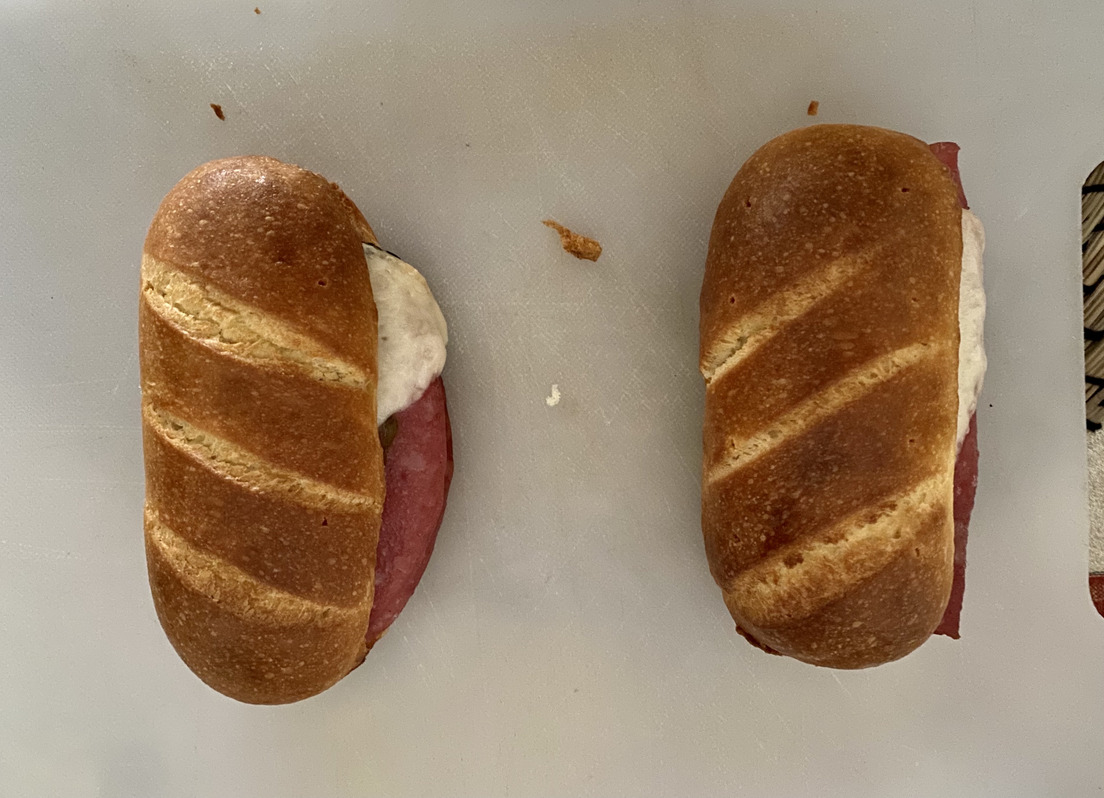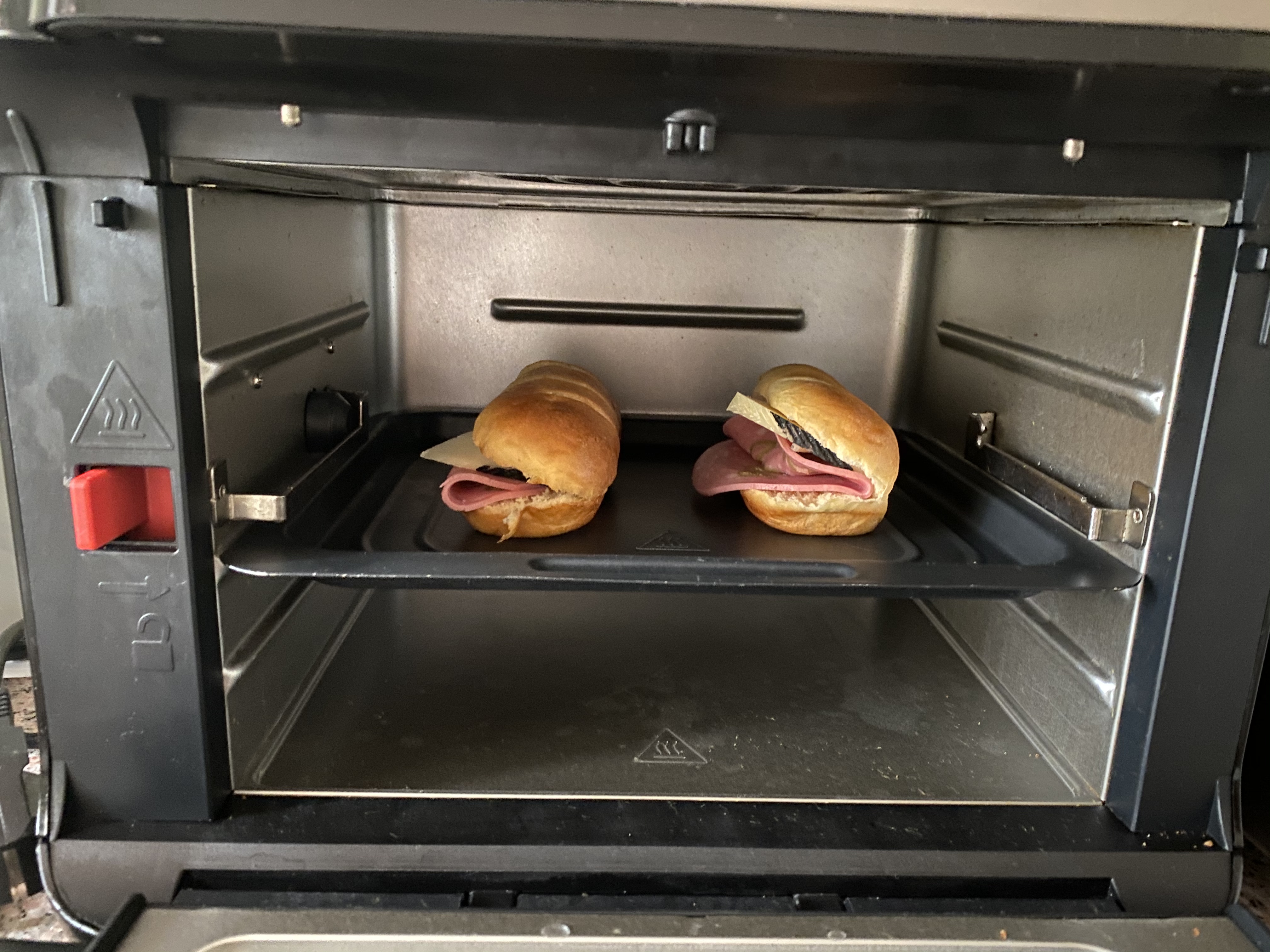 아침에 일어나서 어제 제대로 듣지 못했던 온라인 예배를 듣고, 작업할 것도 잠깐 작업도 하고 그랬다. 은근히 할게 참 많은데 너무 귀찮다. 그래서 느긋하게 아침을 먹었다. 이건 샌드위치 같은 느낌인데, 빵이 약간 브리오슈 같은 느낌? 저기에 햄인데, 모르딸레라 햄이다. 이탈리아 햄인데, 올리브 들어가 있는 햄이다. 은근히 달달하다. 나는 원래 올리브를 먹지는 않는데, 저렇게 먹으면 그래도 괜찮다. 거기에 치즈를 넣고 그냥 에어프라이어에 구웠다.