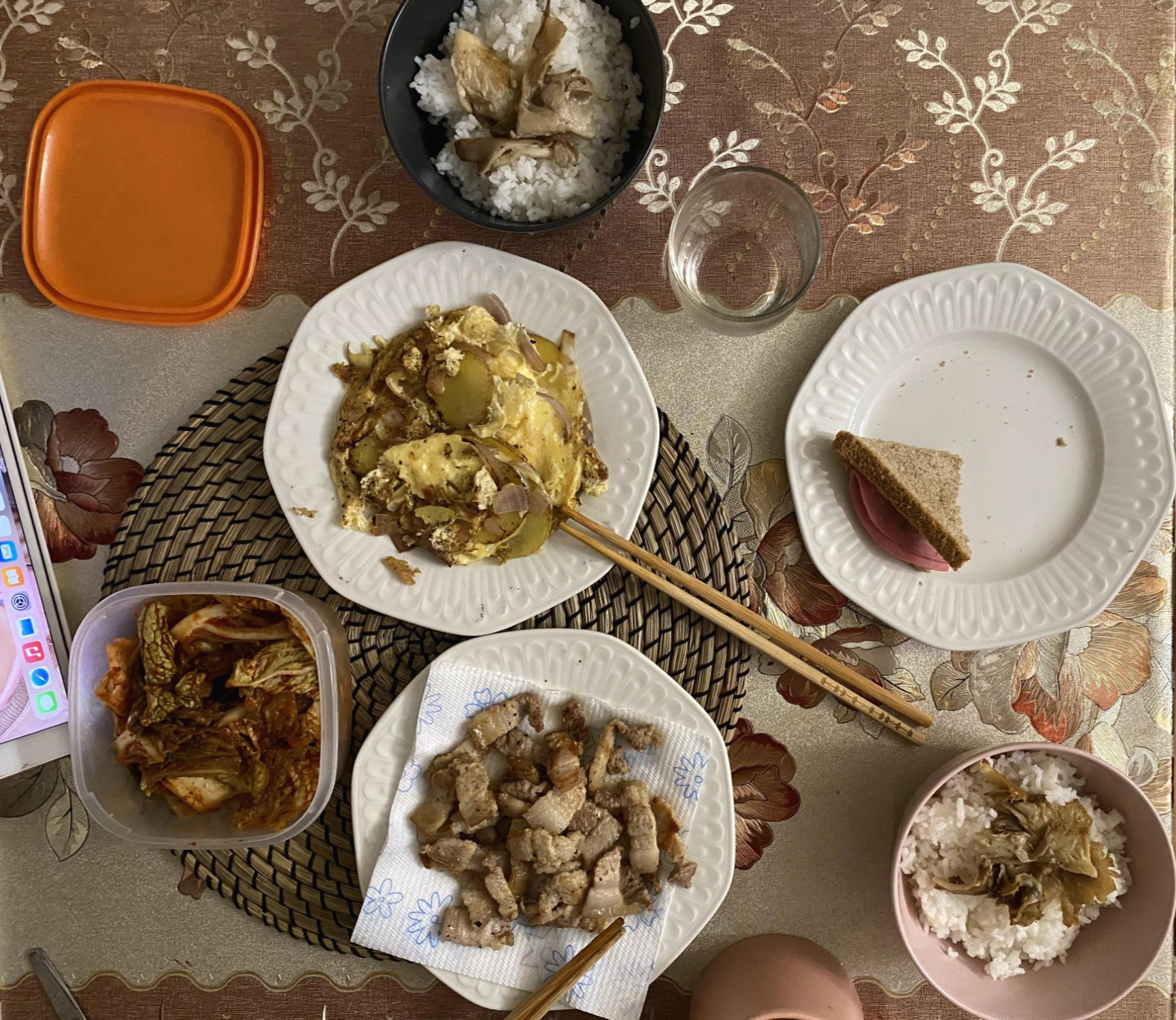 오후에는 조금 낮잠도 자고 쉬다가 새로운 작업을 시작했다. 배워야 하는 프로그램이 있는데 너무 어렵다... 잘 안된다. 어렵 어렵. 계속 끝까지 잡고 있다가 운동도 하고 저녁도 먹었다. 원래 잠깐 밖에 나갈까 했는데 비도 오고 프로그램도 배워야하고 그냥 컨디션도 그렇고 ㅎㅎ 뭐 먹을까 하다가 저녁은 삼겹살 조금이랑 계란 스크램블에 감자도 약간 곁들여서 먹었다. 냠냠 맛있다. 삼겹살은 정말 항상 맛있는 거 같다 ㅎㅎ