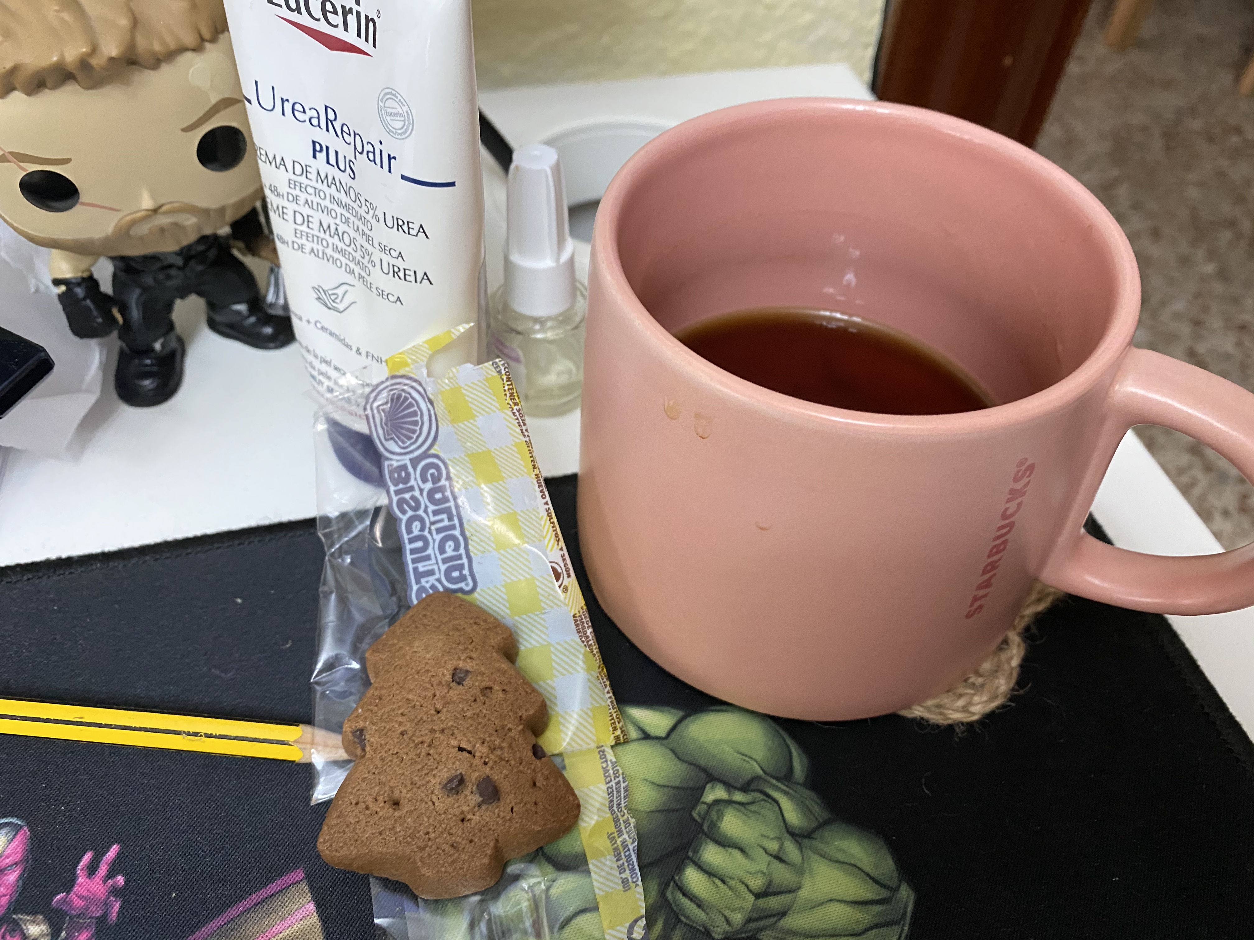 바로 앉아서 일을 하다가 배가 고파서 크리스마스 트리 모양의 쿠키를 하나 주워먹었다. 저번에도 한번 언급했던 거 같은데 진저가 약간 들어간 느낌의 쿠키이다. 밑에 사진은 초코맛 쿠키이다. 이것도 맛있다.