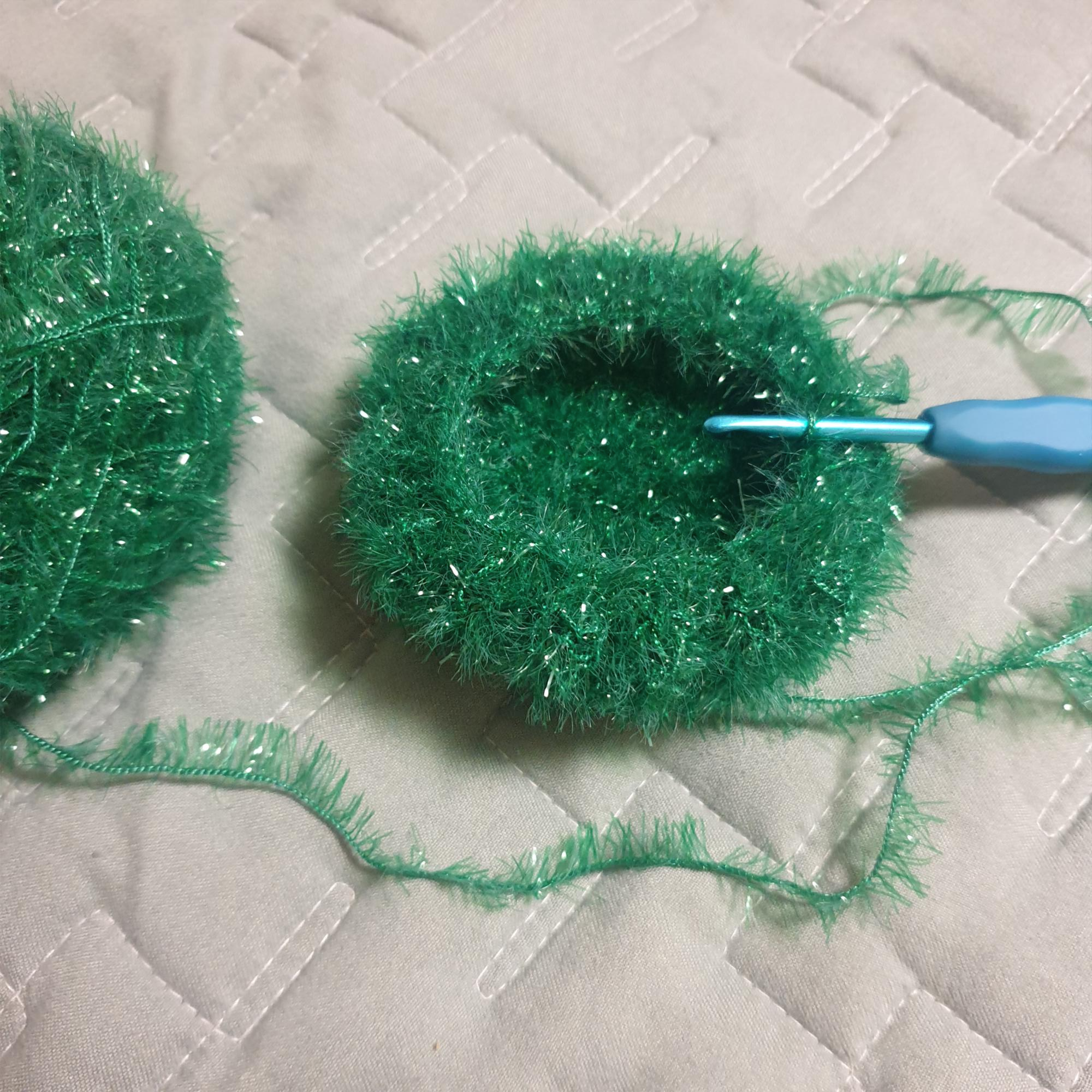팝콘뜨기는 다른 코바늘 뜨기보다 실이 더 많이 들어간다. 초록색 실로 만들다가 실이 다 떨어졌다.