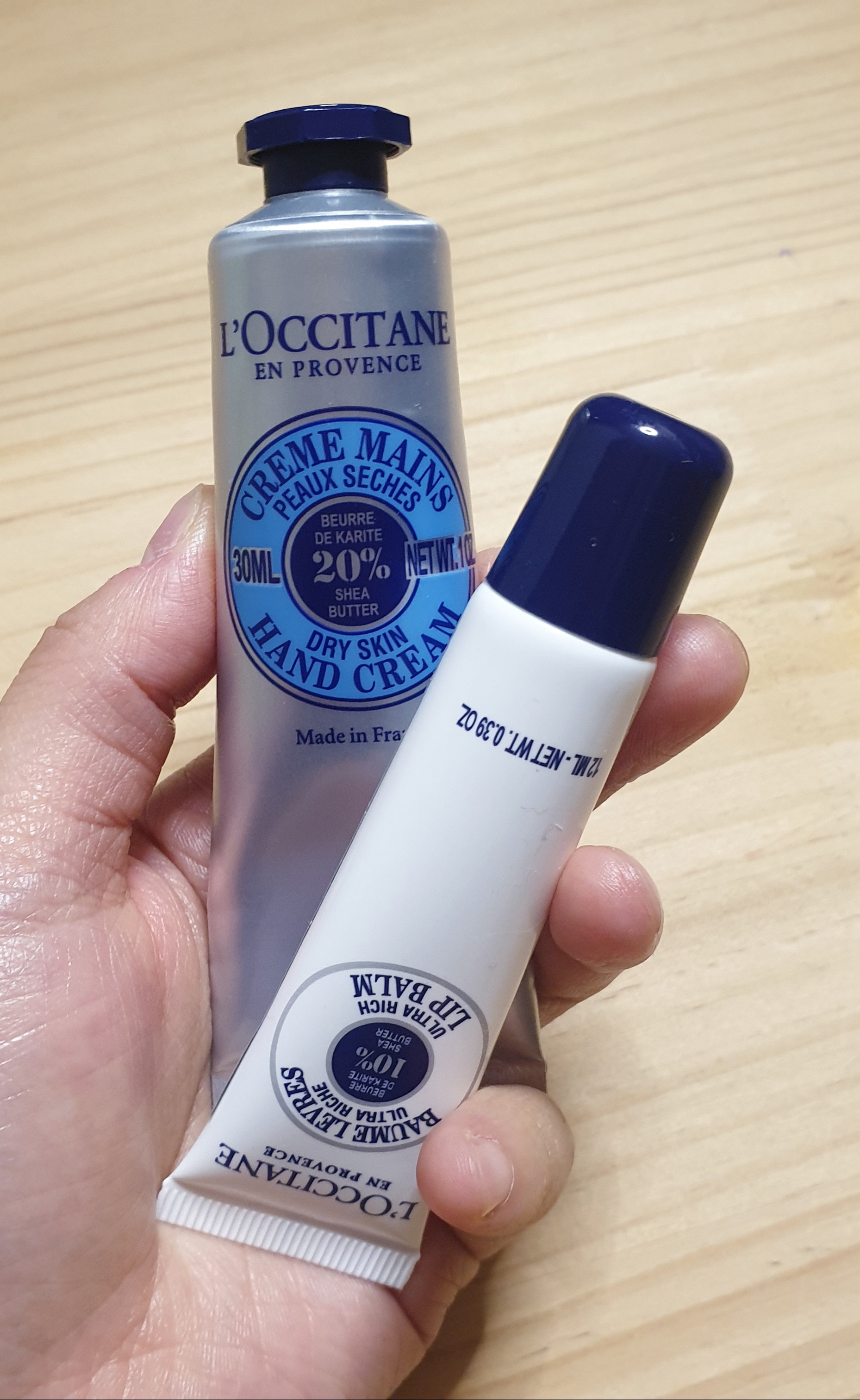 이렇게 한 손에 쏙 들어간다!! 간만에 촉촉한 록시땅을 쓰니까 아휴 넘 좋다!! 선물 받은 핸드크림 다 쓰고 빨리 월급을 받아서 록시땅 핸드크림 또 잔뜩 사서 쓰고 싶다. 록시땅 핸드크림 립밤 촉촉해요!! 추천합니다 :)